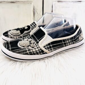 Draven Teddy Bear Black & White Plaid Slip on Loafers Comfort Shoes - Womens 9