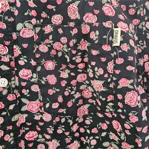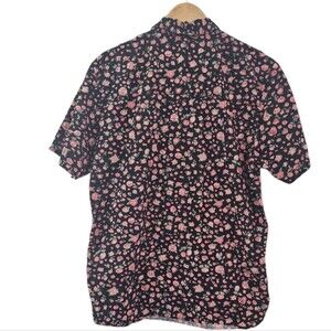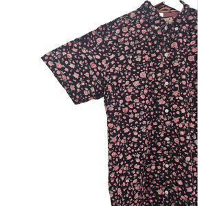 Dravus Button Down Shirt Floral Rose Print Black Pink Sz L Short Sleeve Casual