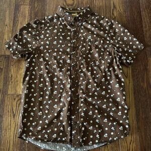 Dravus Everett Mens S Brown Short Sleeve Button Up Shirt Boho Whimsical Floral