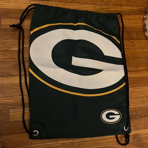 Green Bay draw string backpack. Slight discoloration/marking on logo (pictured). Smoke free home