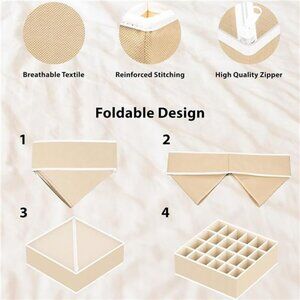Drawer Organizer Set Closet Dividers Underwear Socks Bras Foldable Beige