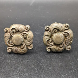 Drawer Pulls Pair 2 Vintage Antique? Metal Decorative Ornate Handles Old Cottage