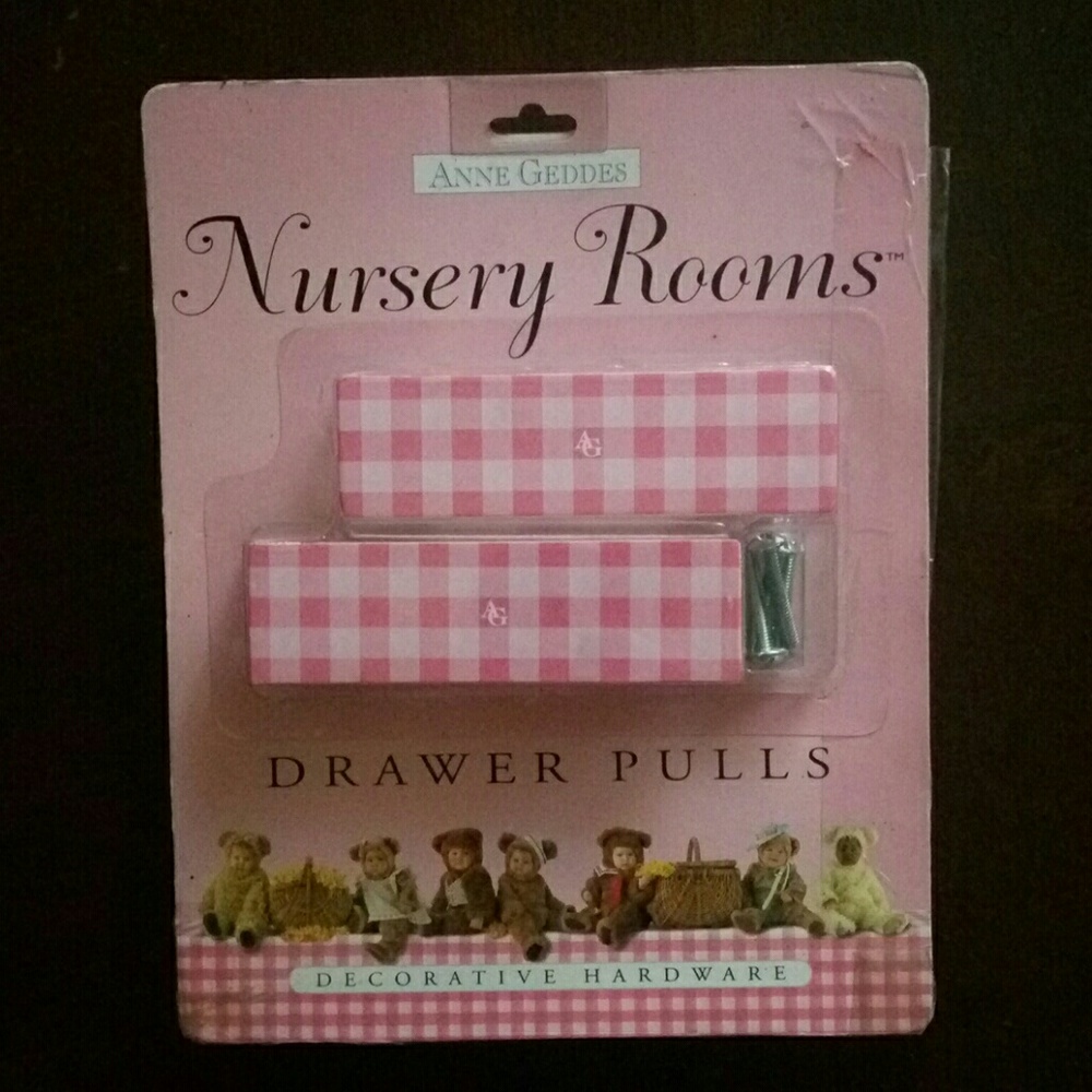 Anne Geddes Nursery Room drawer pulls. Cute pink gingham 4 total with hardware included.