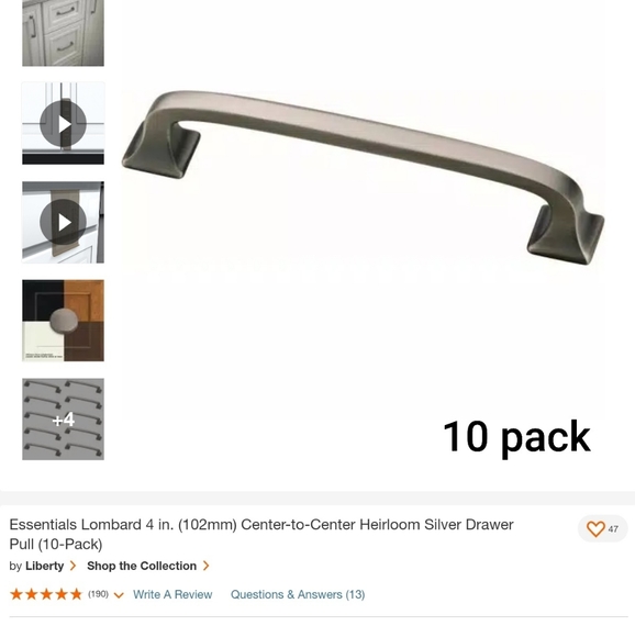 Lombard Drawer Pull in Heirloom Silver (pack of 10)
