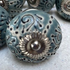 Set of 8 drawer pulls. Turquoise with painted detail. Perfect to change the look of any piece of furniture.