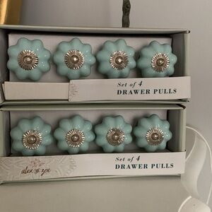 Drawer pulls blue floral set of 8. New