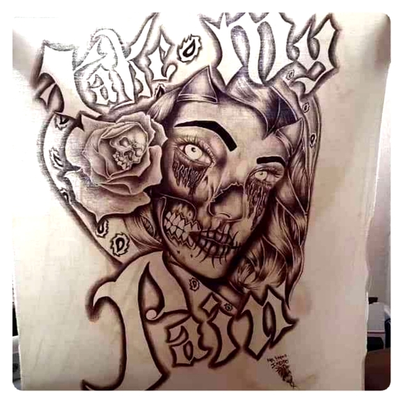 "Day of the dead woman with rose says TAKE MY PAIN"