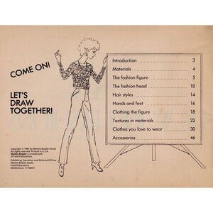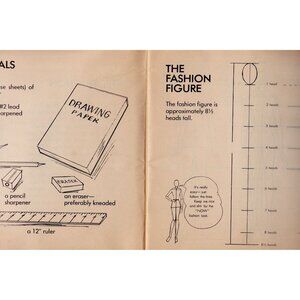 A vintage instructional book for learning to draw fashion figures and clothing styles. Includes techniques, textures, and accessories guidance.