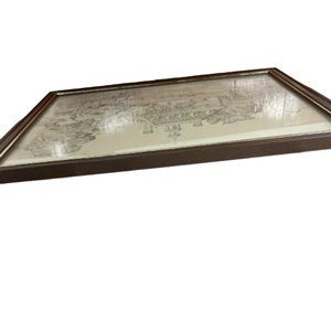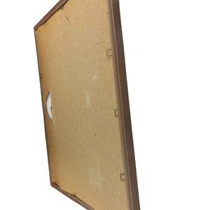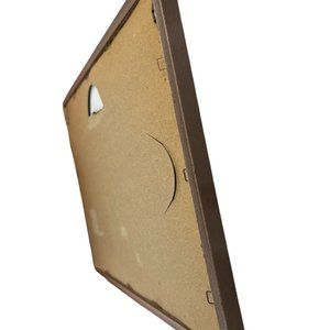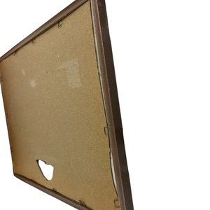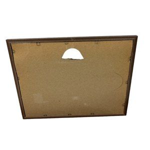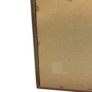 The vintage frame is in good useable condition with some fading on the metallic detailing around the frame. Some of the staples are partially rusting or missing. It would be best used if displayed by leaning the frame rather than hanging. The glass in the front might be heavier than the back.