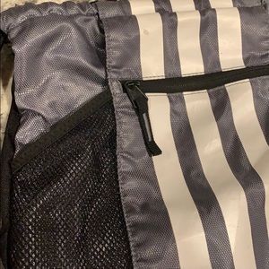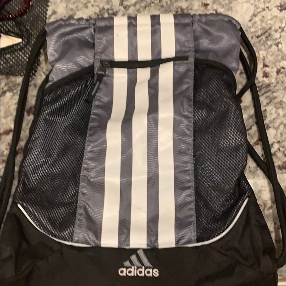 Adidas Alliance Drawstring Backpack. 100% polyester drawstring top closure, dual cord adjustable