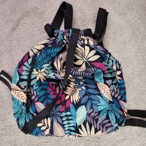 New with tags! Lightweight drawstring bag. Perfect for gym or beach. Inside and outside zipper pockets plus 2 small inside pockets. Photos show liner and pockets on inside of back. Nylon and water resistant