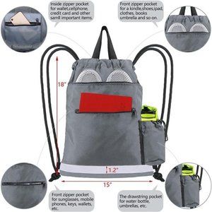 🧿Convenient Multi Pockets: Our durable draw string sport bag has 2 front zipper pockets: the single is perfect for keeping an iPad, sunglasses, and other small items,another is an ideal place for shoes. Besides, the side cinch bag allows you to place a water bottle or umbrella easily. Inside of gym sack, the zipper pocket can hold small valuables such as wallet, cellphone, keys to avoid any pickpockets. Multiple Pockets help you to keep things to be placed by category, easy to be found.
