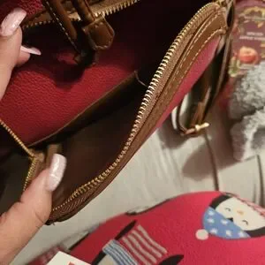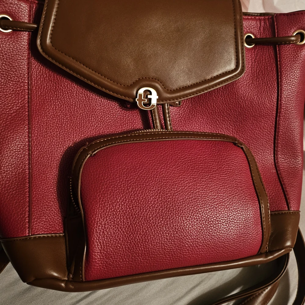 Time and Tru Women's Faux Leather Drawstring Backpack, Persimmon/Brown Chestnut