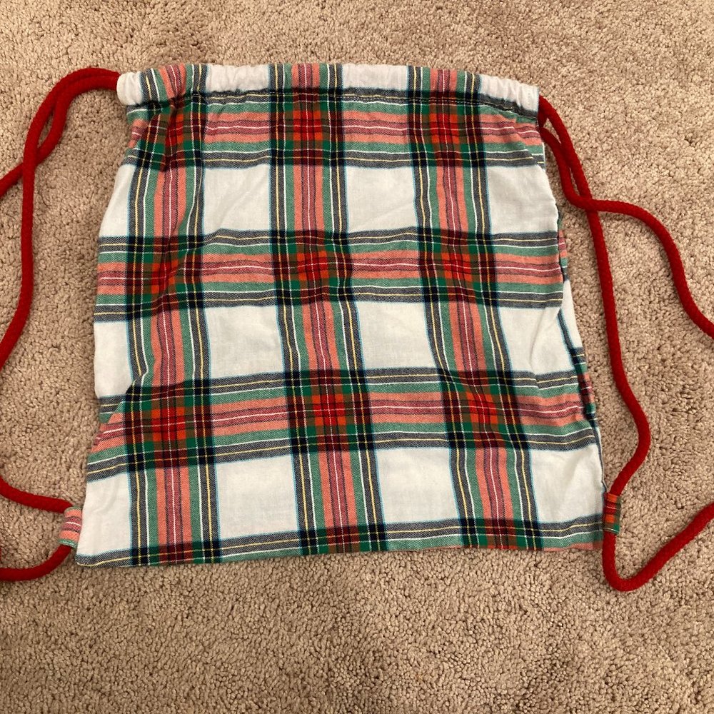 Stars above plaid drawstring bag, red and white plaid Stewart Tartan Plaid
