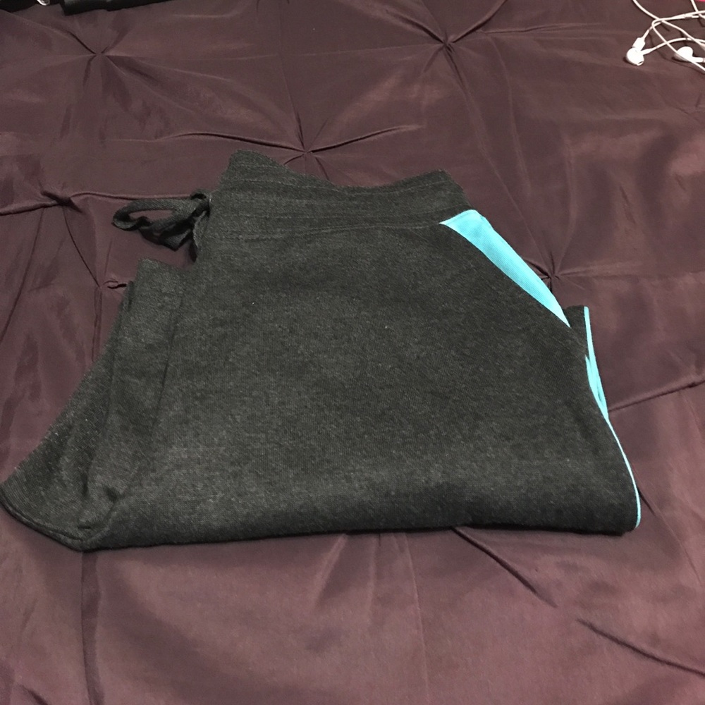 (Grey/Blue) Capri sweat pant. 60% Cotton 35% Polyester 5% Spandex