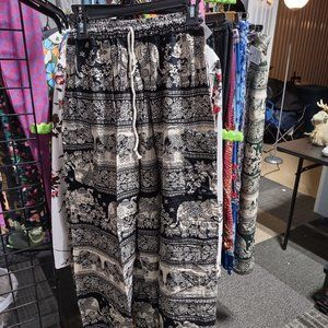 Drawstring Elephant Print pants from Zig Zag Asian Collection - Free Size. In Black and White .