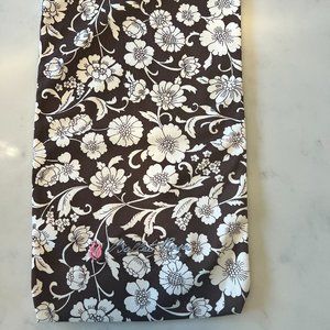Brown with a white floral pattern and pink drawstring - fabric bag 7 inches wide 12.5 inches long