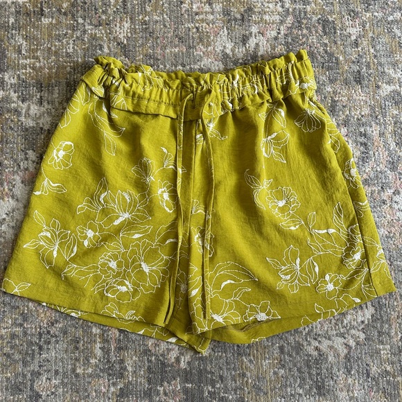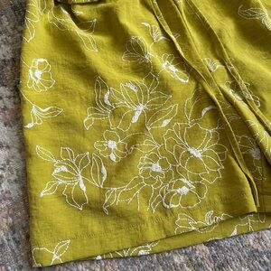 Drawstring Floral Embroidered Ruffle High Rise Shorts Chartreuse Green Medium