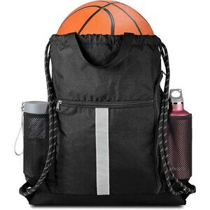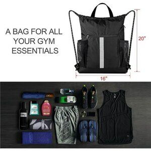 🧿LARGE SPACE: The main space of drawstring backpack for men measures 16" x 19.5" which is big enough to hold a basketball, gym clothing, swim gear, sport towel and daily supplies. Perfect for gym, sports, trip, travel, camping, hiking, walking, running and more! It's also a great sports gift for men, women. Men and women can use it as a gym backpack.