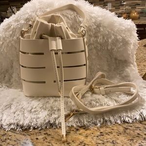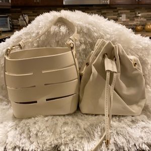 Faux leather bag with removable drawstring bag Matching straps included as shown New without tags Also available in color Tan