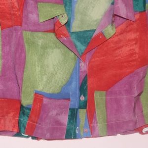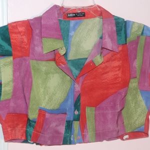 Drawstring Hem Button Up Colorblock Blouse