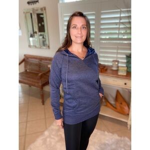 Comfy heather drawstring hoodie with banded bottom. Kangaroo pockets and tunic length. Super soft.