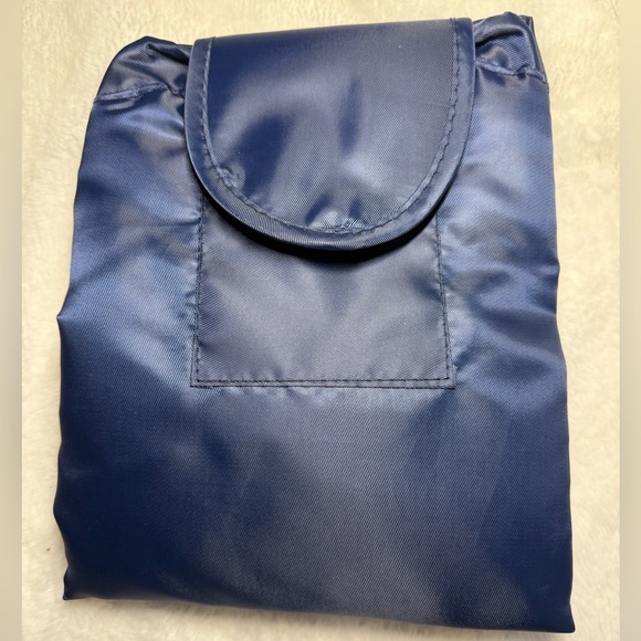 Stylish navy blue drawstring makeup bag. Perfect for travel or daily use. Opens flat for easy use. Brand new.