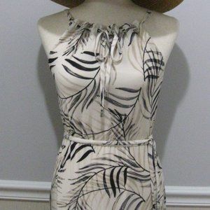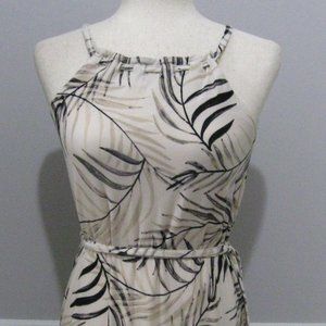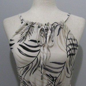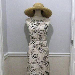 Drawstring Neckline Maxi Sundress Ivory Beige Tropical Print