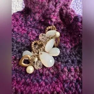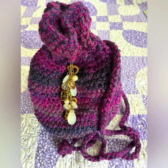 Purple mix colors for a soft stitched pouch with decorative (removable) charms. Round bottom that has reinforced lined bottom. New condition, never used