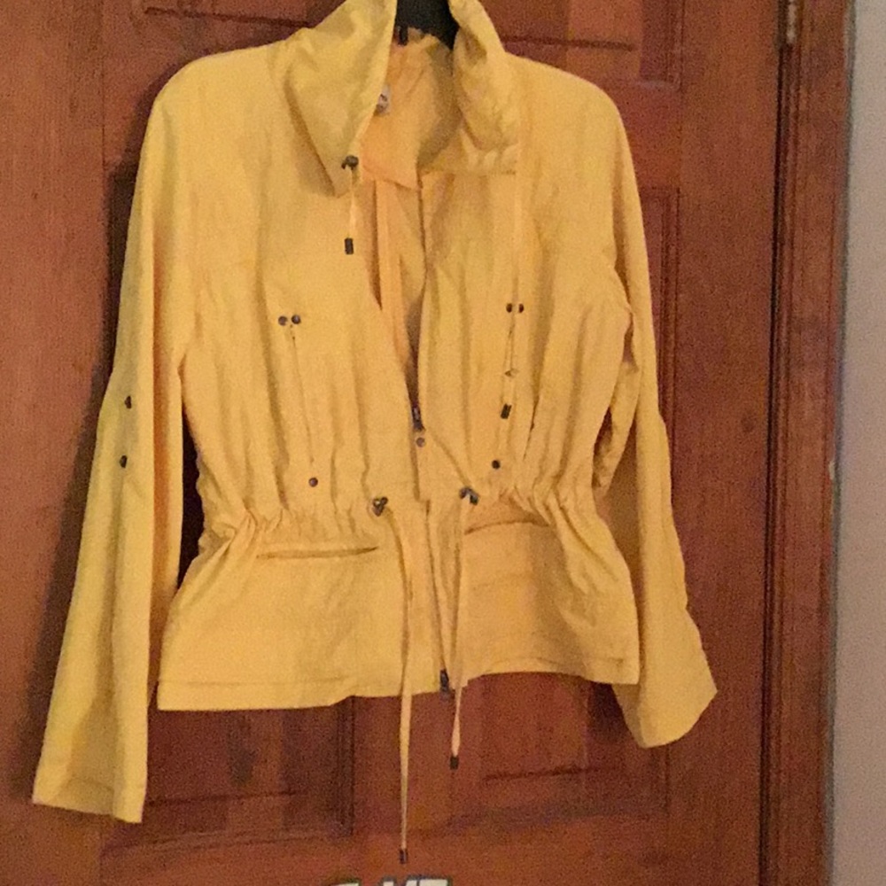 Lightly worn. Excellent condition. Shoulder to hem 22”. Polyester/ nylon blend. Cute on!
