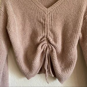 NWOT. Drawstring ruched front sweater. Gorgeous blush color. V-neck. Soft & fluffy material.