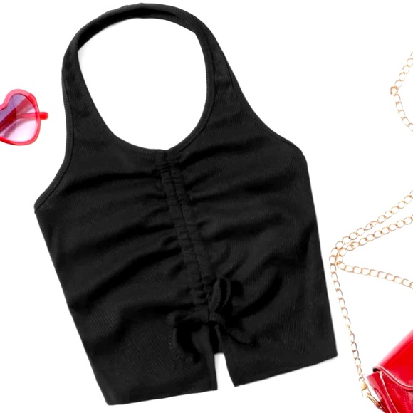Black, Shein Drawstring Ruched Halter Top