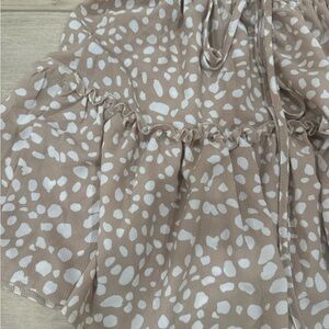 Tan and white skirt. The picture with the model is not the print I have. I shared those pictures so you can see how it looks on But the print it tan with white dots.