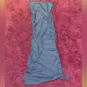This stylish blue rib-knit bodycon dress is perfect for any occasion. Its drawstring sides add a trendy touch, making it a must-have for your child's wardrobe.