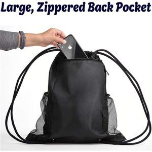 *MORE POCKETS THAN OTHER DRAWSTRING BAGS - front zippered pocket, back zippered pocket, interior mesh zippered pocket, and two side mesh pockets