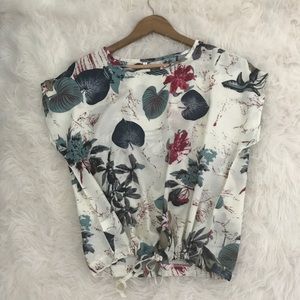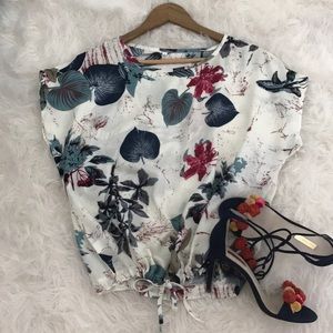 Leaf print drawstring top NWOT, so it's never worn. It has a relaxed fit on top and the waist can be cinched in to accentuate your curves, or left loose.