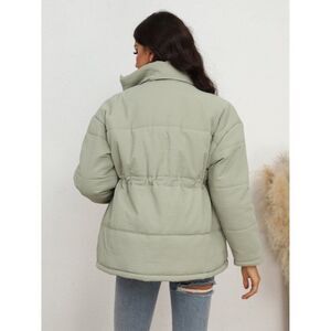 Drawstring Waist Zip-Up Puffer Jacket