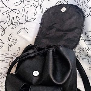 A faux leather draw string backpack, used for fashion and purpose. Less then a year old and barely used.