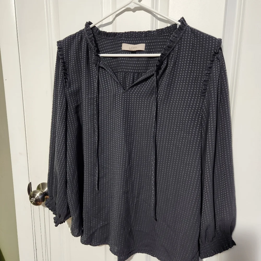 XL tunic blouse with elastic sleeves and drawstring at the neck. so comfy and cute patten. great for work!
