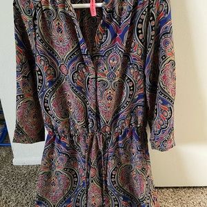 Super cute toe waist dress in a gorgeous print. Light weight , long sleeves. Perfect for summer. Can be worn as business or casual. Size small. Cinched waist.