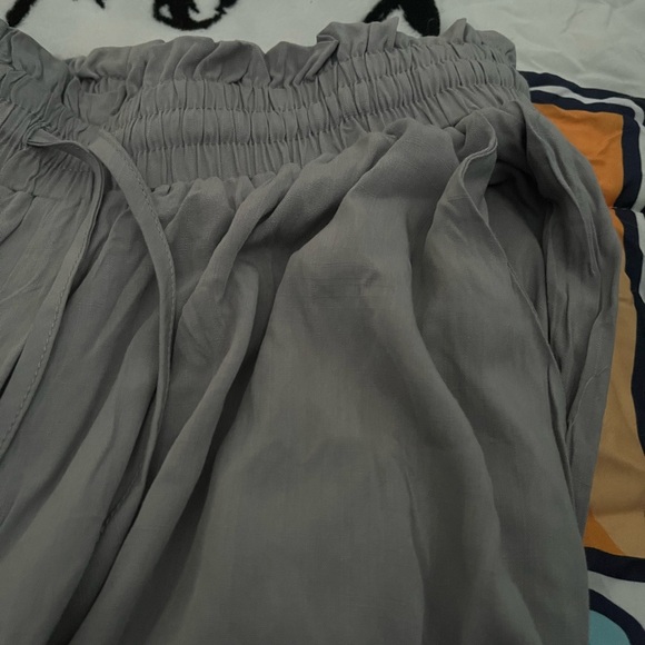 Grey wide leg pants with pockets. Drawstring elastic waist. Very flowy long pants
