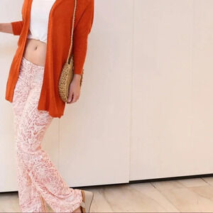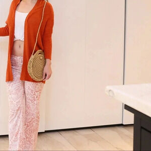 Flowy pants with an orange print fit for your next vacay! Drawstring waist. Cardi and purse in other listings.