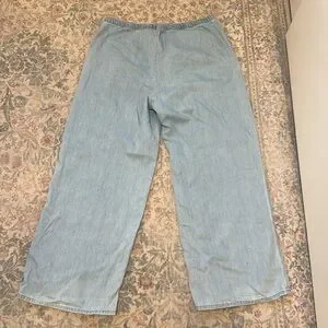 Flowy light weight denim drawstring pants in good condition. One spot as pictured