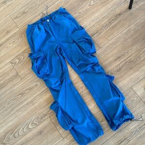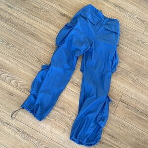 Street Vibes Flap Pockets Drawstring Ruched Parachute Cargo Pants in blue. So comfortable and cool! In perfect condition, only worn once.