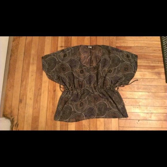 Light and flows nicely. Dark paisley print with a drawstring waistband, excellent condition