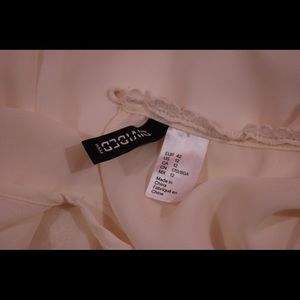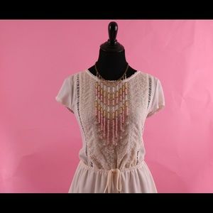 Lace detailing on bodice. Romper. Drawstring. Necklace not included