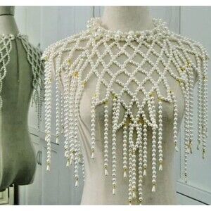 - **An Elegant Shoulder Wrap**: Draped with simulated pearls and delicate gold beads, this wrap adds an element of charm and unique texture to your gown.