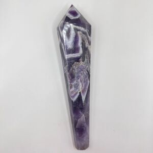 A dream amethyst crystal meditation wand combines the soothing energy of amethyst with the grounding properties of white quartz. This wand enhances spiritual awareness, aids in meditation, and promotes emotional balance. It is believed to protect against negativity and support inner peace.
