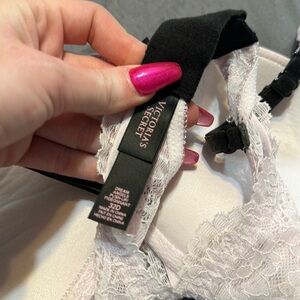 Beautifully laced Dream Angel Push-up bra. Part of the runway collection, embellished over cups. Light purpleMesh detailing over straps and hook closure in back. Can be worn regular or racer back.