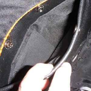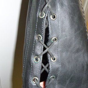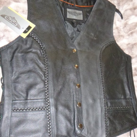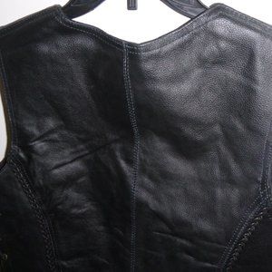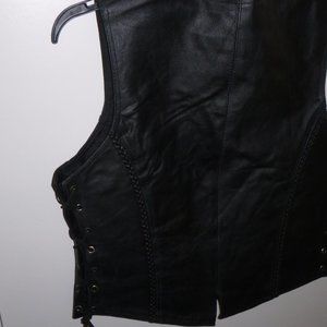 Dream Apparel- Womens Leather Vest- Front has 5 snap closures. Side laces for size adjustment. 2 outside pockets. 2 inside concealed gun pockets made of special heavy-duty textile with built-in holsters and snap closure. Size: XL, Measurements: Chest: 43 Waist: 42 Back: 22